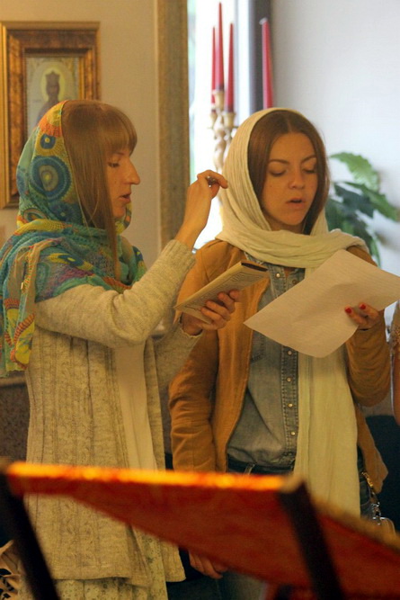 Диакон: "Премудрость",хор: "Честнейшую херувим...","Слава, и ныне", "Господи, помилуй" (3р.), "Благослови".